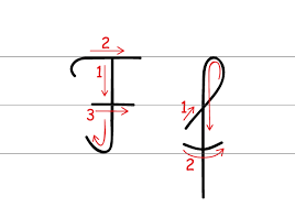 Rodzic prosi dzieci o podanie skojarzeń związanych z kształtem litery F, f. Prezentuje sposób pisania